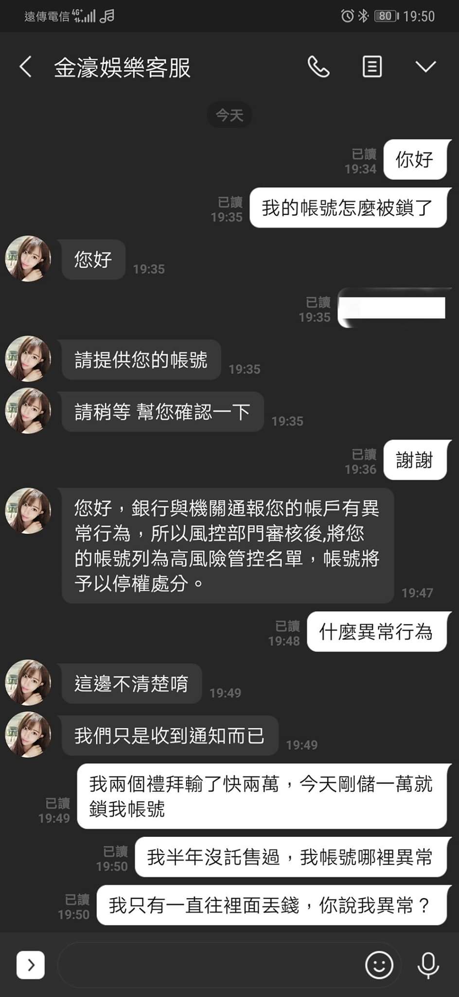 沒想到剛儲值一萬塊馬上被鎖帳號