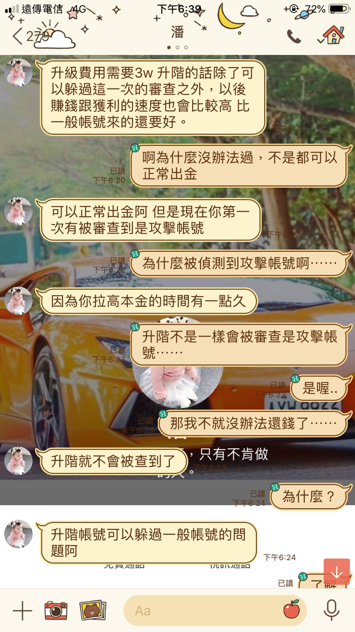 第一次獲利3萬3說要補金一半才不會被偵測到,補了一萬五之後說還沒辦法提領要升階帳號才可以提領,一萬六送你們啦不領了