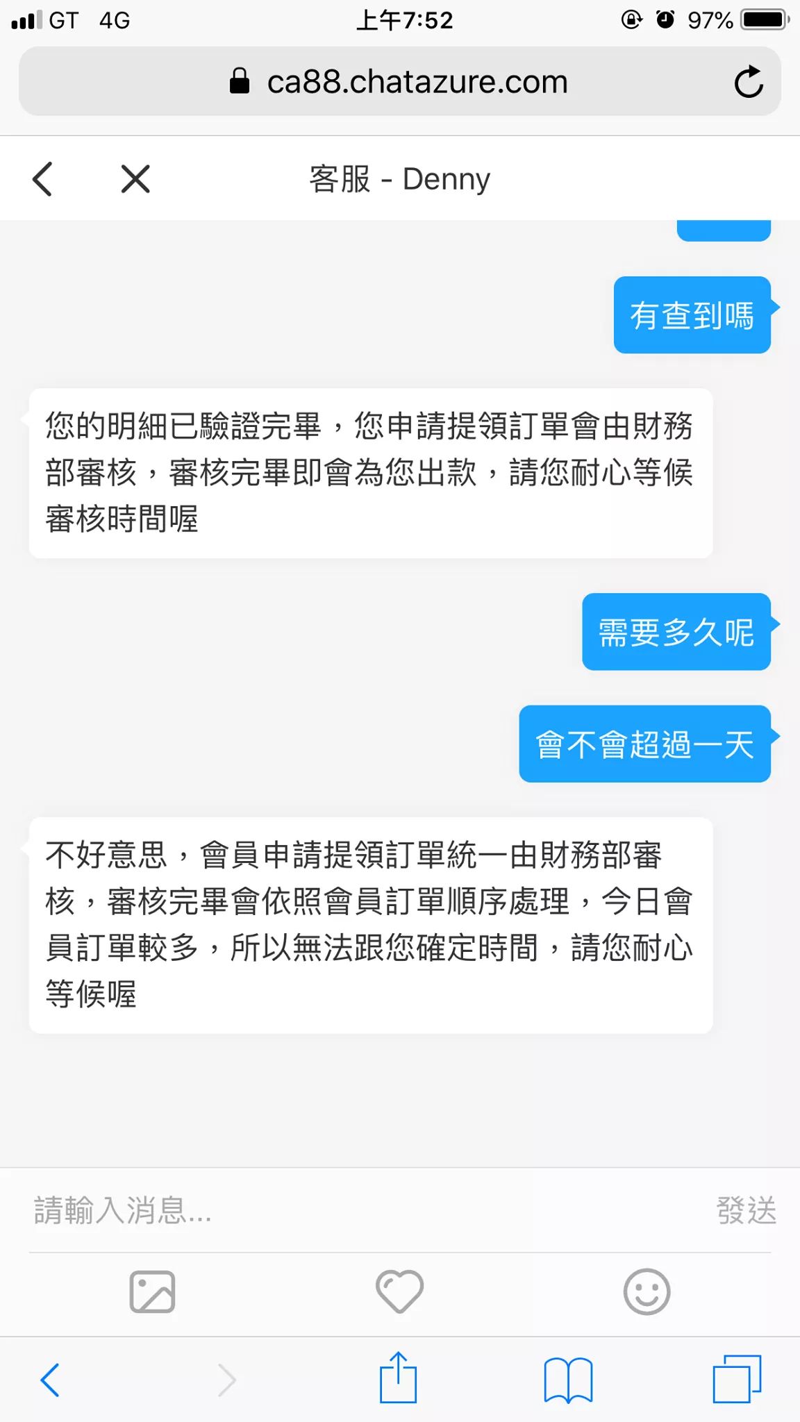 這間騙錢 !!!!帳號密碼我都設一樣的根本沒改喔!我朋友是卡莉的代理我不知道。然後我跑去問我朋友 他說是他鎖起來的!!!!!!