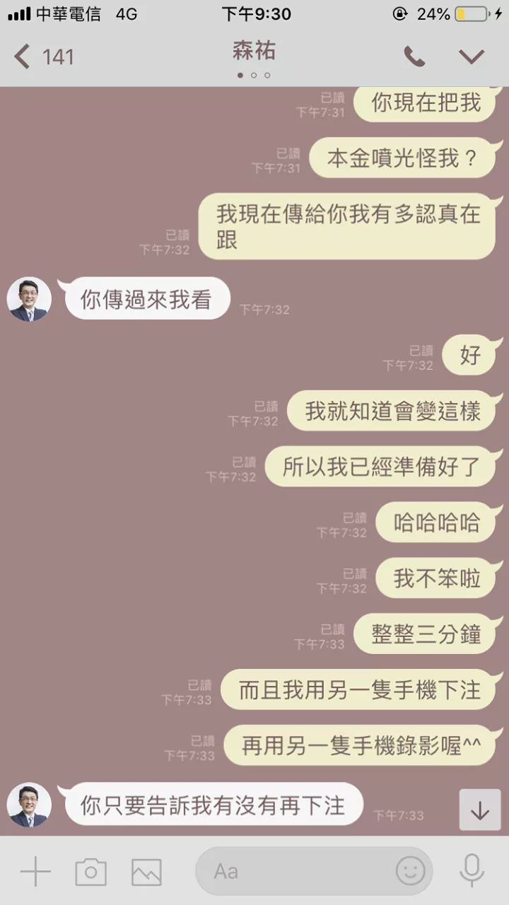 第一次匯1000跟我說違規 如果參加課程就能領出之前的1000好我信了 直接匯10000然後他第一次帶我下注一直壓秒下注要我匯到五萬才能繼續啟動什麼外掛程式第二次我就在想他一定把我本金噴掉 我就錄影了 果真現在真的本金沒了 證據我都留著 還一直怪我? 詐騙集團生小孩沒屁眼啦!想要看錄影的也可以留言