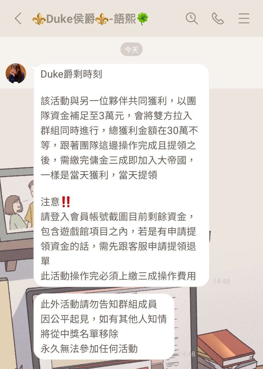 網路上都沒有查到,他們一開始入群錢會請你用慈善捐款或是匯款給他們