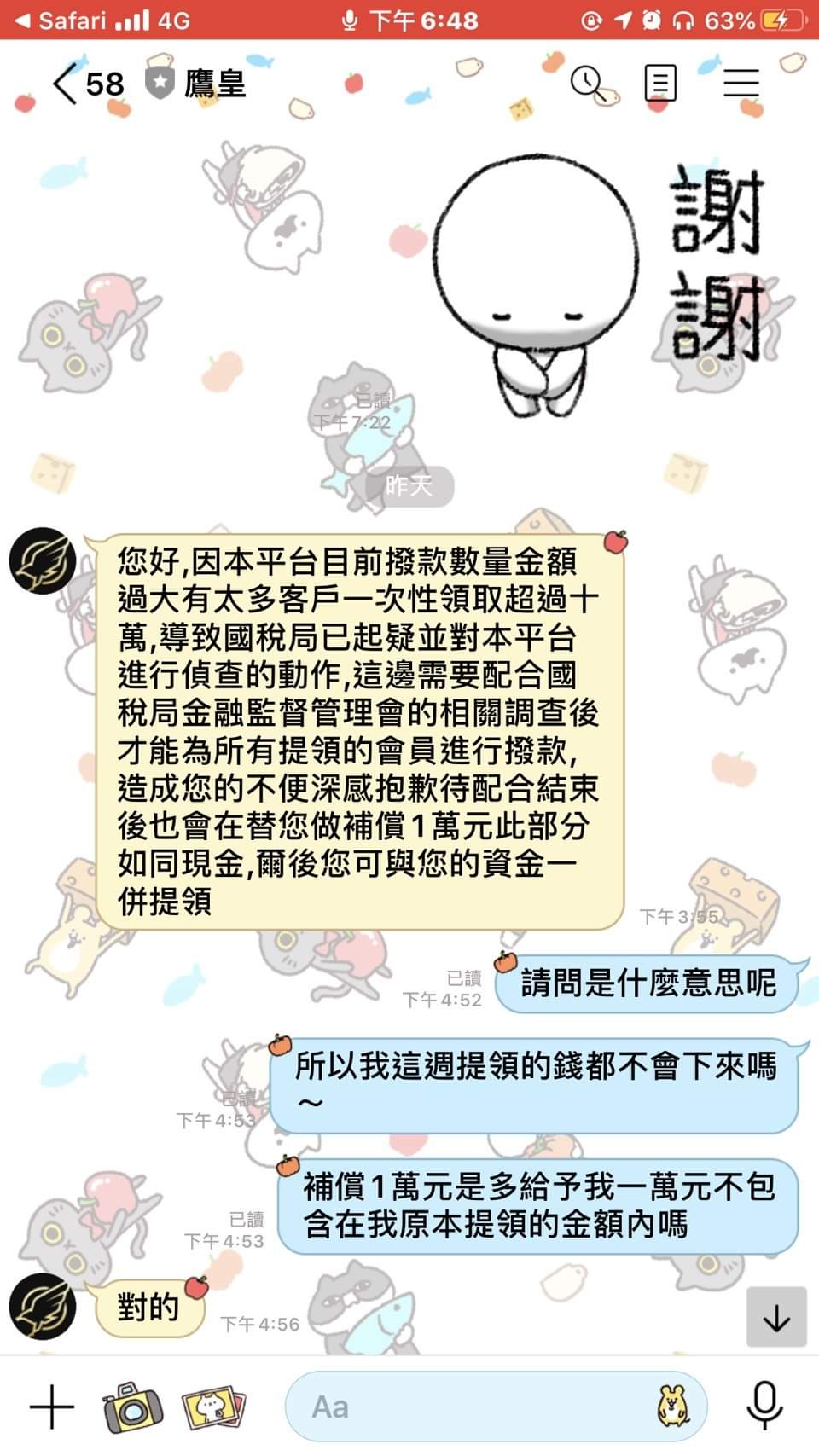 以下是我的對話紀錄 只是想告知大家不要再受騙了