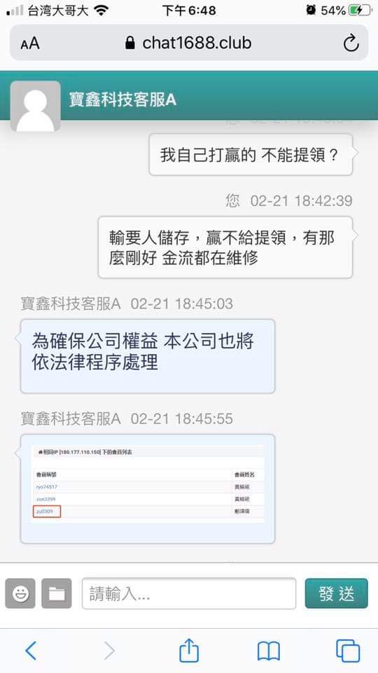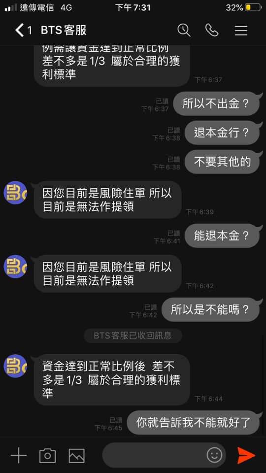 因為我沒匯給他後續場次沒辦法繼續,那你們公司也要倒閉了吧,他說:我現在沒馬上匯給他會害他倒賠很多錢$,我傻眼我才倒賠3000塊吧⋯⋯整個無言,昨天提領今天帳號被鎖..這些人真的會有報應!到處詐騙很多人