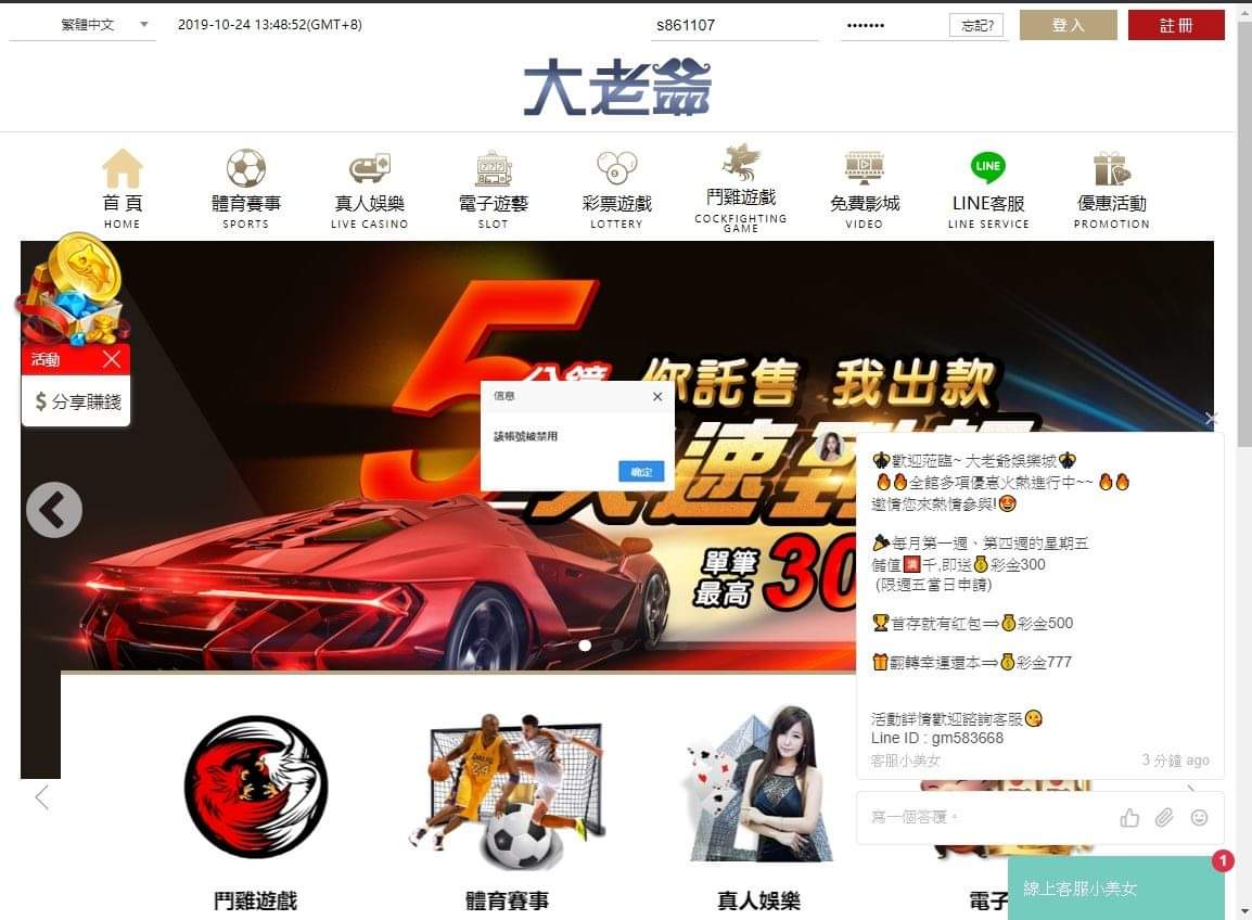 大老爺這間平台 目的就是要你入錢進去然後領不出來