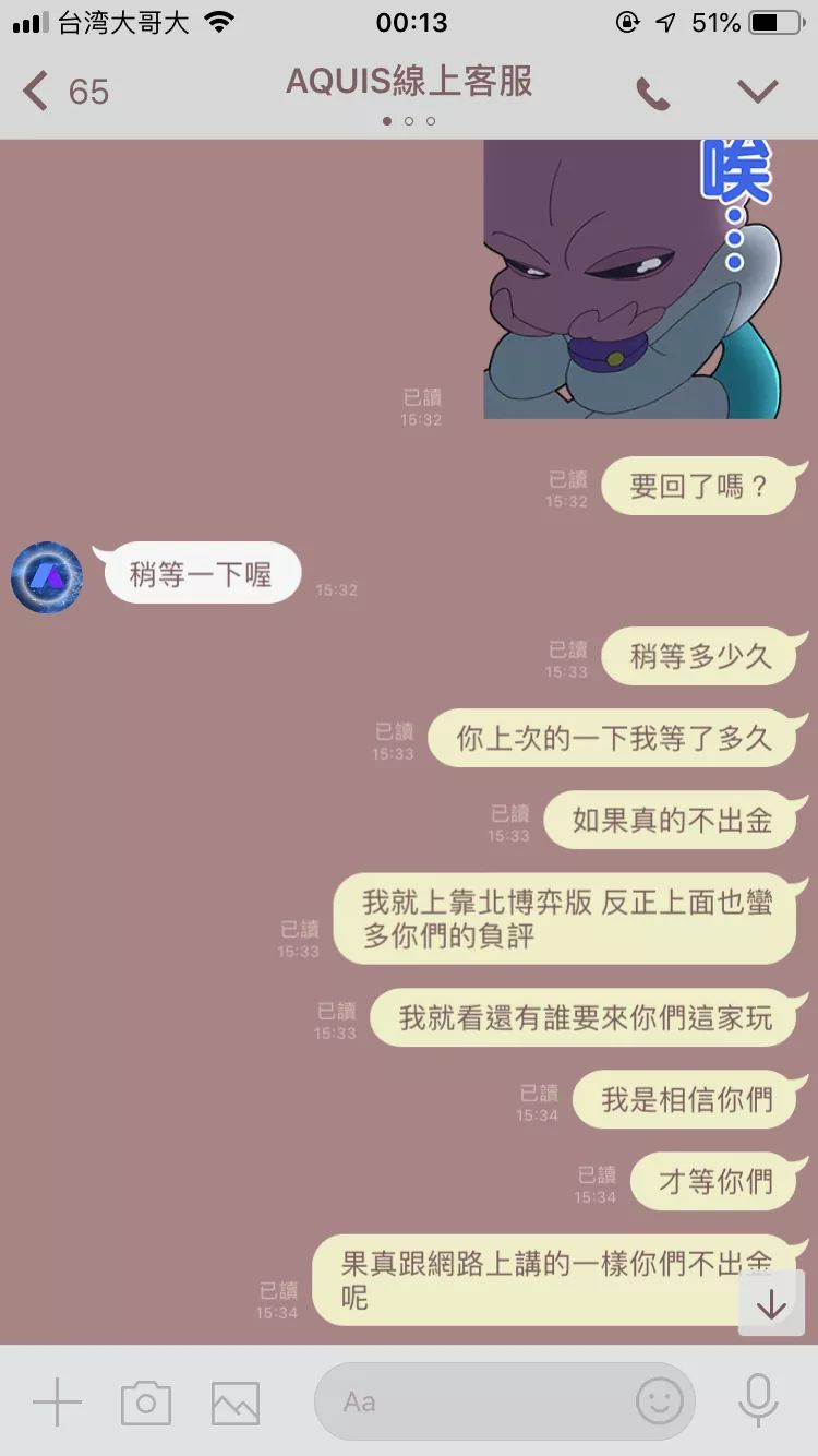 事情是這樣的...當初在fb看到這個粉專想瞭解詳情於是加入他們的line做諮詢,他們是跟大立平台合作保證具有穩定獲利高達80%還有配合專業工程師分析數據讓你從中獲利,時不時還傳獲利圖給我看讓我降低他們的防衛心,於是我就被套路了....入了本金5000台幣轉換人民幣為1000帶我獲利後變1019,過一陣子說數據不穩會失利本金不足需要再儲一到兩萬進去把風險降到最低,我就找朋友借了一萬塊準備要入進去,幾天過後一直聯繫不上他們才發覺我平台裡的帳號被停用...就TMD贏了一點小錢就把我本金坑走把我line封鎖⋯⋯你們用相同方式對待人家,人家就用相同方式回報給你們,最後祝福你們惡有惡報,報應隨時都會回到你們身邊,所以大家要提高警覺別被黑心代理套路了!!!
