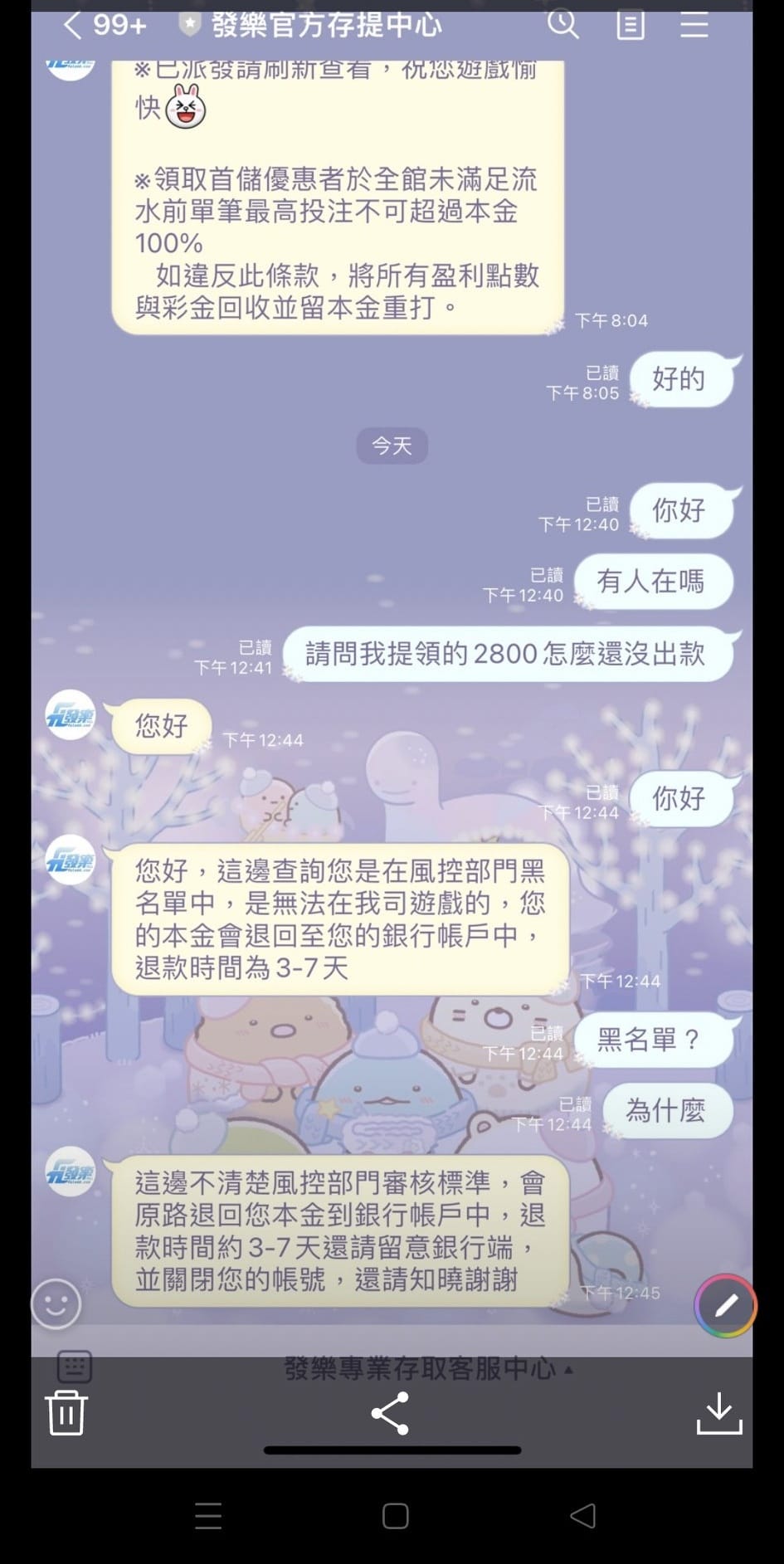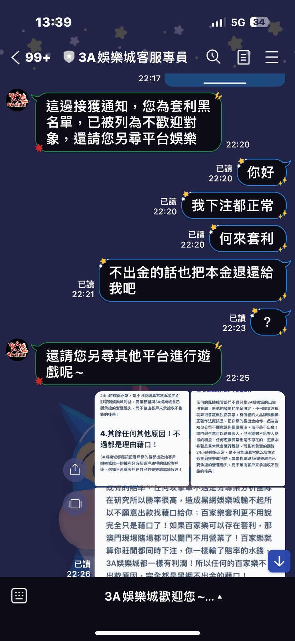 要出金的時,擅自把我的盈利扣掉,只退回本金然後就只丟了一句系統偵測投注