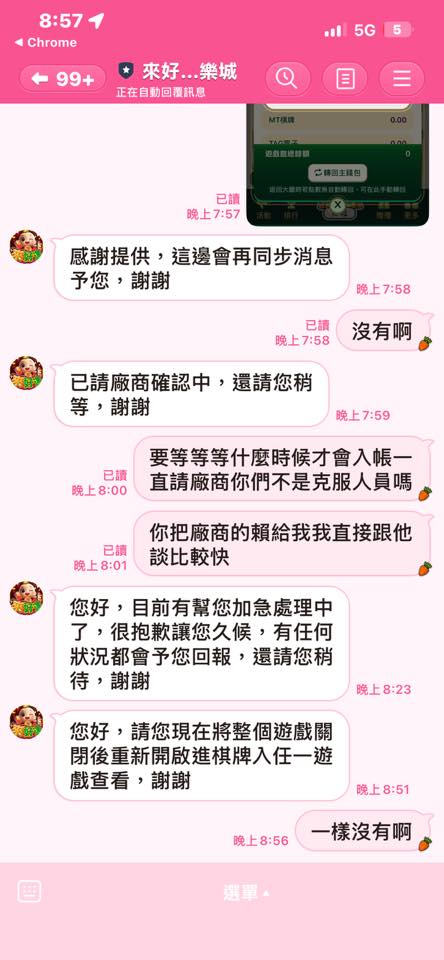 這個「鉅城娛樂城」已經整整4小時還沒出款!有夠扯的!已經不止一次超過3小時以上還沒「收到款」越玩越賭爛!唯一不變的理由:託售人數眾多,風控問題⋯等等理所當然的理由!請不要「踩雷」😡黑網真的越來越多